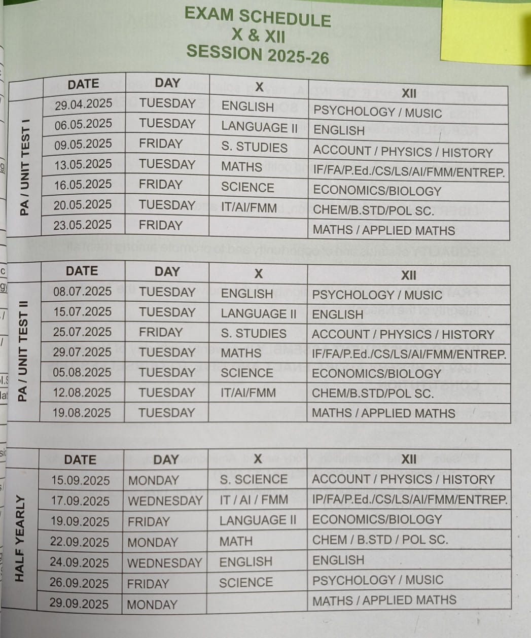 Assessment Schedule 2025-26 - Primary Wing Assessment Schedule 2025-26 - VI - IX and XI Assessment Schedule 2025-26 - X and XII