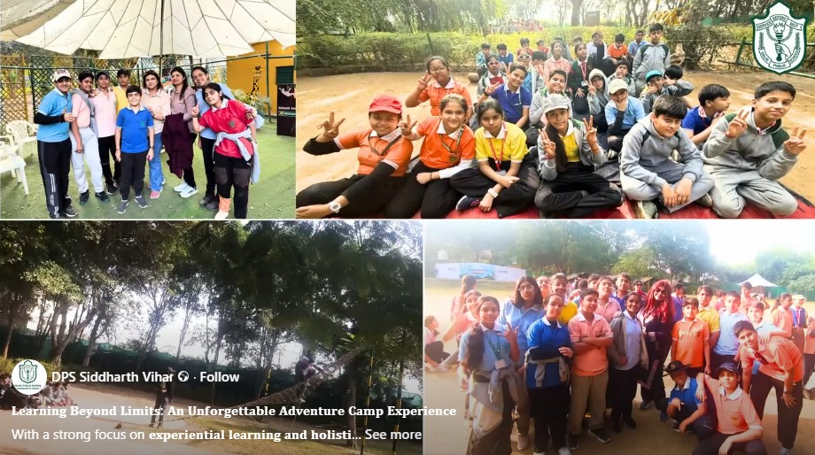 1) Learning Beyond Limits: An Unforgettable Adventure Camp Experience. With a strong focus on experiential learning and holistic development, DPS Siddharth Vihar organised an exhilarating Adventure Camp at Rocksport for students of Classes VI to XII. The picnic offered students a refreshing break from their routine school schedule, giving them the opportunity to enjoy a day filled with fun, bonding, and adventure. Students enthusiastically participated in a variety of thrilling activities such as zip lining, rock climbing, rope courses, and team games, creating an atmosphere of excitement and joy. All activities were conducted under expert supervision, ensuring a safe, secure, and well-managed environment throughout the picnic, allowing students to relax, explore, and make unforgettable memories with their friends and teachers. Students bonded deeply with their peers and teachers, stepping out of their comfort zones and embracing challenges with enthusiasm and courage. Laughter, learning, and limitless energy filled the day as students created memories that will stay etched in their hearts forever.